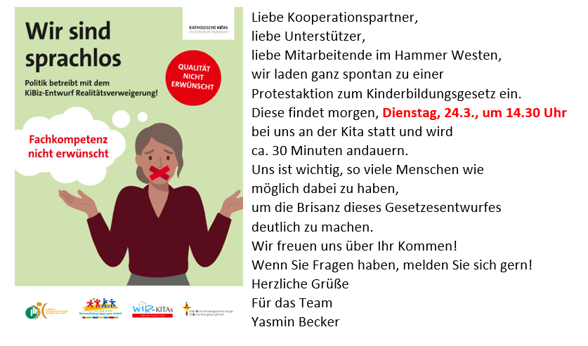 Protestaktion zum Kinderbildungsgesetz in unserer Kita am 24.3.2026